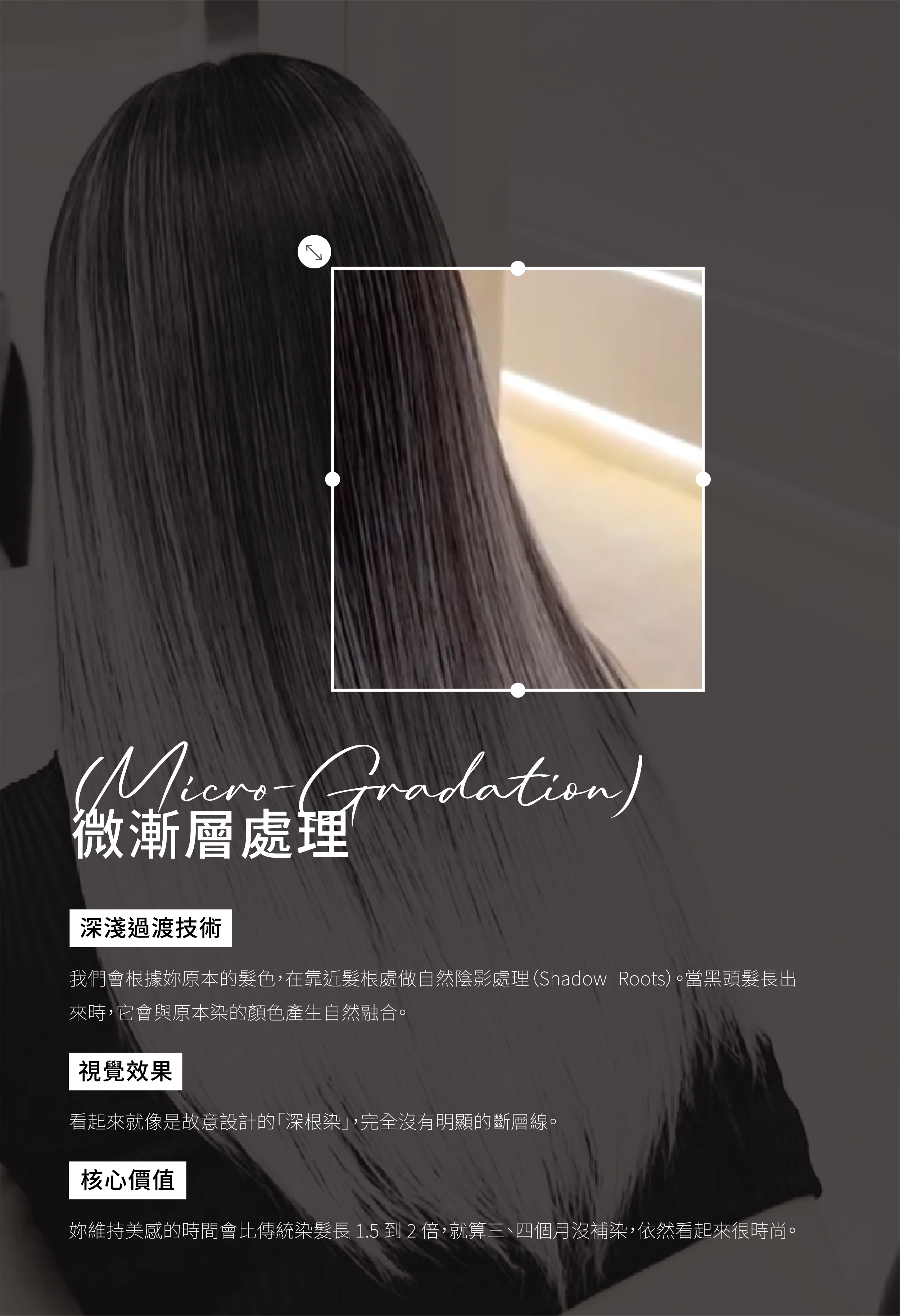 而是針對妳的髮根進行微漸層 (Micro-Gradation) 處理: