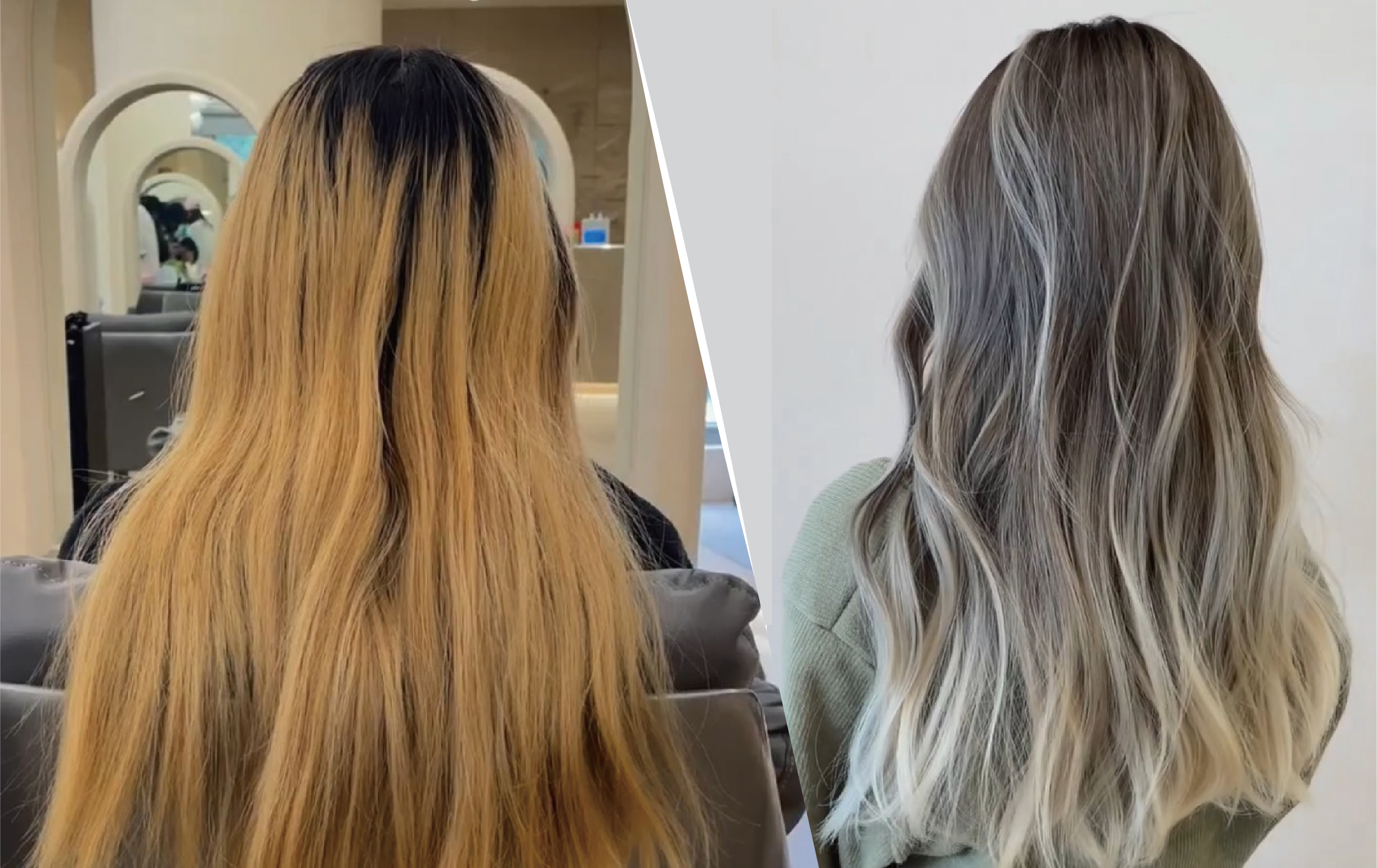 怕布丁頭很醜 | 建議三個月回來全頭補染 | 髮根深淺過渡設計,長出黑髮也自然 | 長出黑髮也像漸層線條染 |